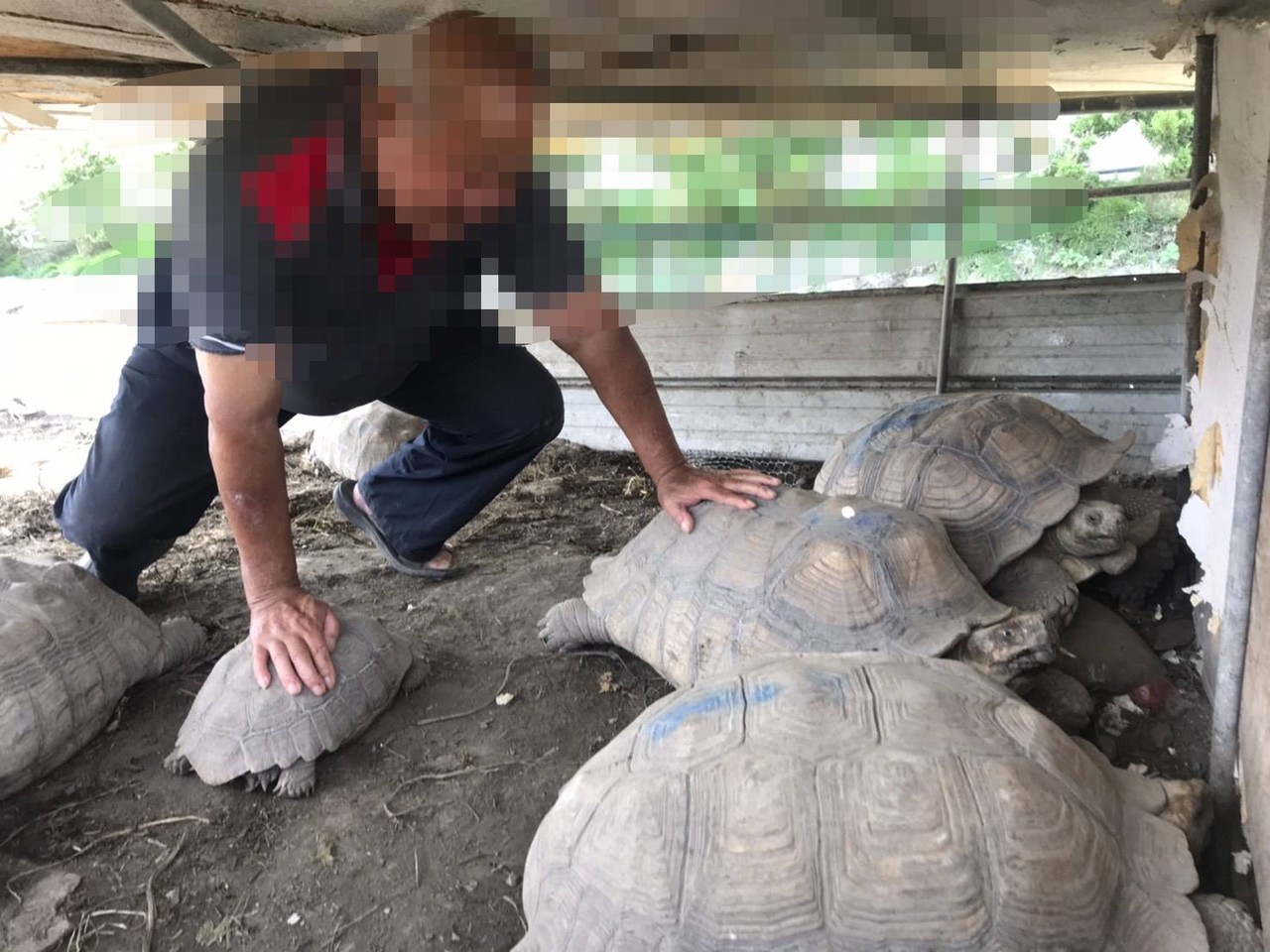 彰化田尾王姓村民飼養將近20隻蘇卡達象龜,其中有一隻龜王「閃電腿」趁家人不注意時,偷跑出去放風,家人急得在臉書「我是田尾人」po網拜託網友幫忙協尋,海豐派出所警員游富彥,得知此消息後,不放過任何尋找機會,有民眾在國道附近發現閃電腿,又得知警方四處尋找,趕緊將牠載回親愛的主人懷抱。