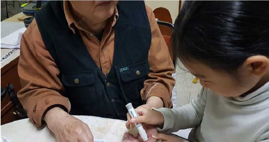 ▲林妍希從小由祖父母帶大,在幼兒園時學做許多家事,每天還會固定幫祖父抽血、量血糖。(圖/新北教育局提供)