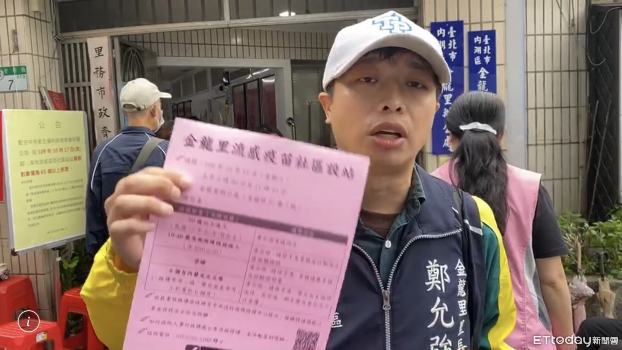 今年公費流感疫苗短缺,衛福部長陳時中16日緊急宣布50-64歲無高風險慢性病族群暫緩施打,引起許多反彈。《ETtoday新聞雲》記者今(17日)實際前往里民服務中心發現,確實有部分民眾不知道突如其來的政策因而撲空。內湖金龍里里長鄭允強一邊安撫民眾並氣憤丟施打疫苗通知單表示,「一句話讓我們一年的辛苦全打消」。