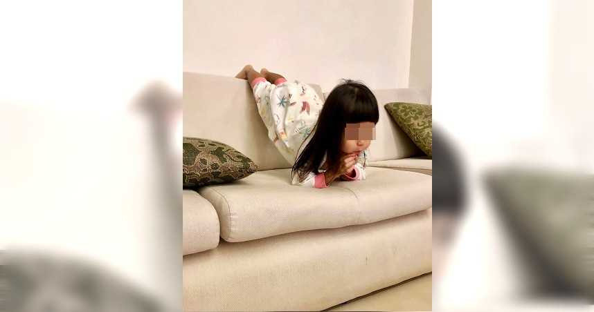 近日有網友在臉書「爆廢公社二館」專頁,放上一張女童雙手托腮、雙腳扣在沙發椅背,兩眼專注直盯前方,以類似瑜珈動作「棒式」的姿勢看電視,讓PO文者忍不住發文:「2歳女兒看電視時,會一直維持棒式的姿勢,而且還一次比一次高」,讓他不禁好奇「不知道下一次會不會倒立做?」