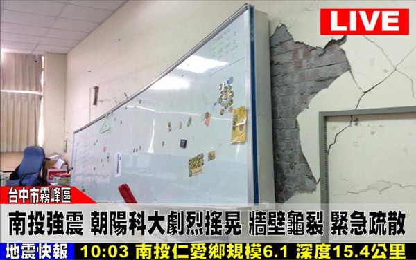 朝陽科大指出,南投仁愛鄉發生規模6.1地震,是今年以來唯一超過規模6的地震。本校立即採取疏散措施,目前師生無恙,校務正常運作。