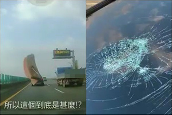 知名部落客的E小編(Elva)15日晚上於臉書《跟著Via趣旅行》上傳一段行車紀錄器影像,表示自己當天下午4時許與老公正從台東開車回台中,怎料行經國道3號靠近長治交流道附近時,天外突飛來橫禍,一個莫名異物不偏不倚打中她轎車「黑骨雞」的擋風玻璃,致當下原先在副座打瞌睡她也瞬間完全清醒,不禁直呼:「就在這一瞬間,車子完全無法閃躲…太太太可怕了!」