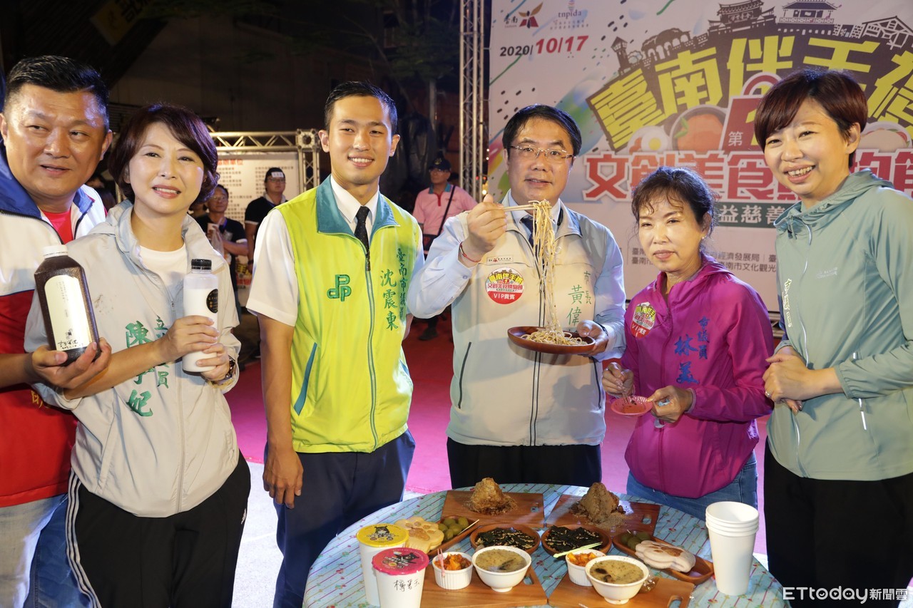 ▲第1屆「台南伴手禮文創美食購物節暨公益慈善活動」,於中西區海安路熱鬧登場,黃偉哲親自力推在地的文創商品及伴手禮,與市民朋友熱鬧互動、品嚐美食。(圖/記者林悅翻攝,下同)