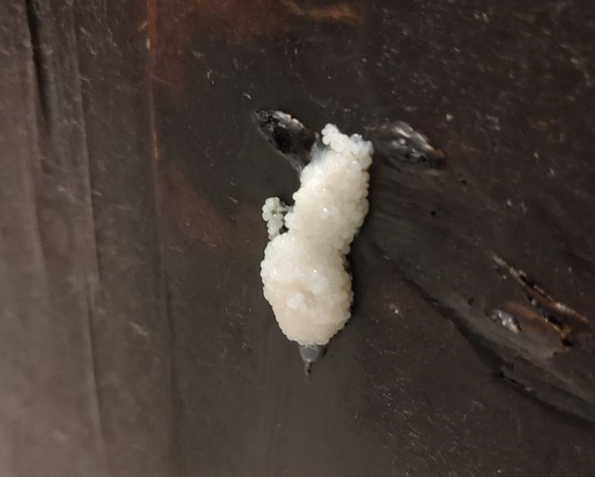 原PO在爆系知識家透露,她在浴室的門上發現這一團卵狀物體後,曾經使用水把該物體沖掉,不久白卵一下子就又冒出來,讓她看了相當無奈,後來打電話詢問除蟲公司,對方告知該物體不是白蟻卵,「難道是黴菌嗎」、「該怎麼處理」、「有人知道這是什麼嗎。」