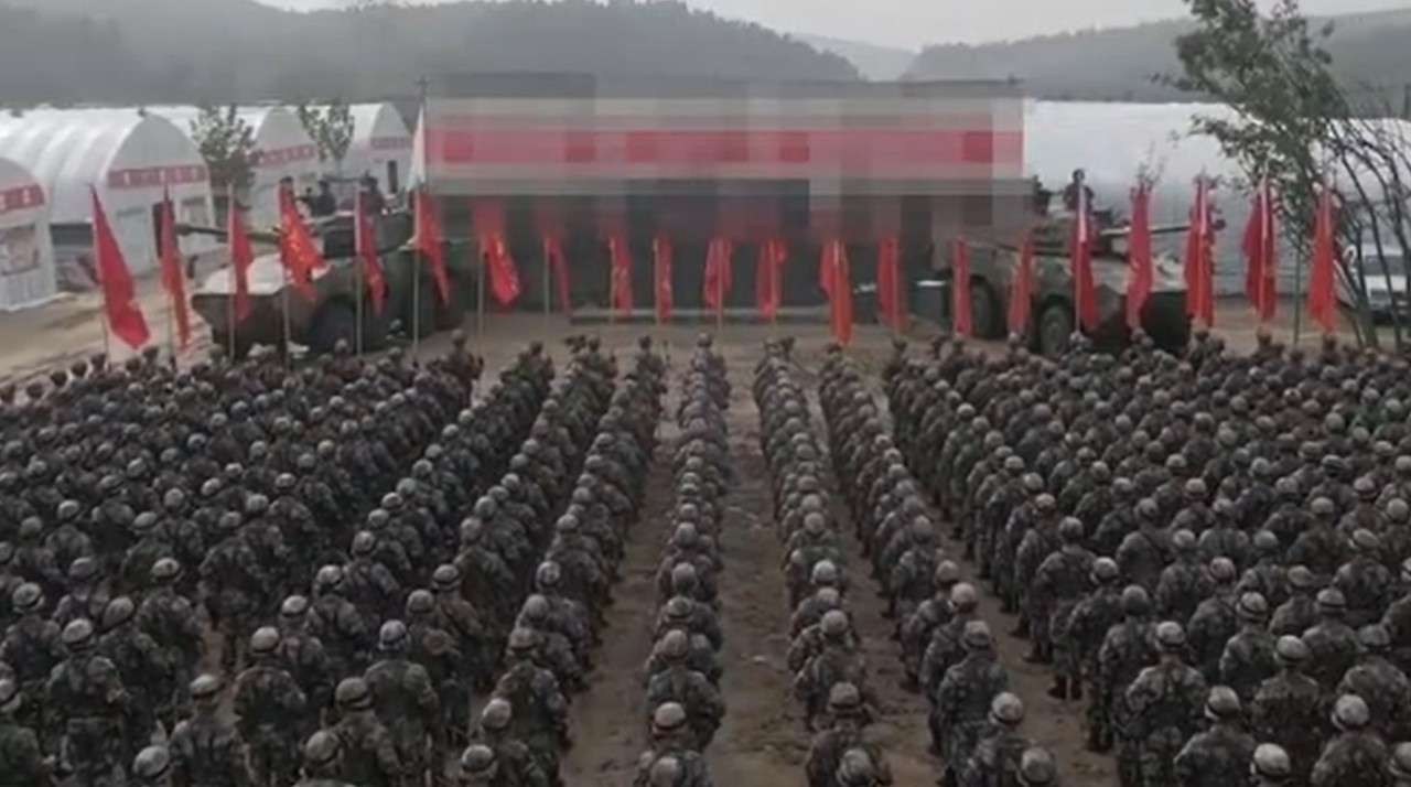▲▼解放軍東部戰區誓師畫面曝光 橫幅打馬賽克遮出征目標引關注。(圖/翻攝自微博「東部戰區」)