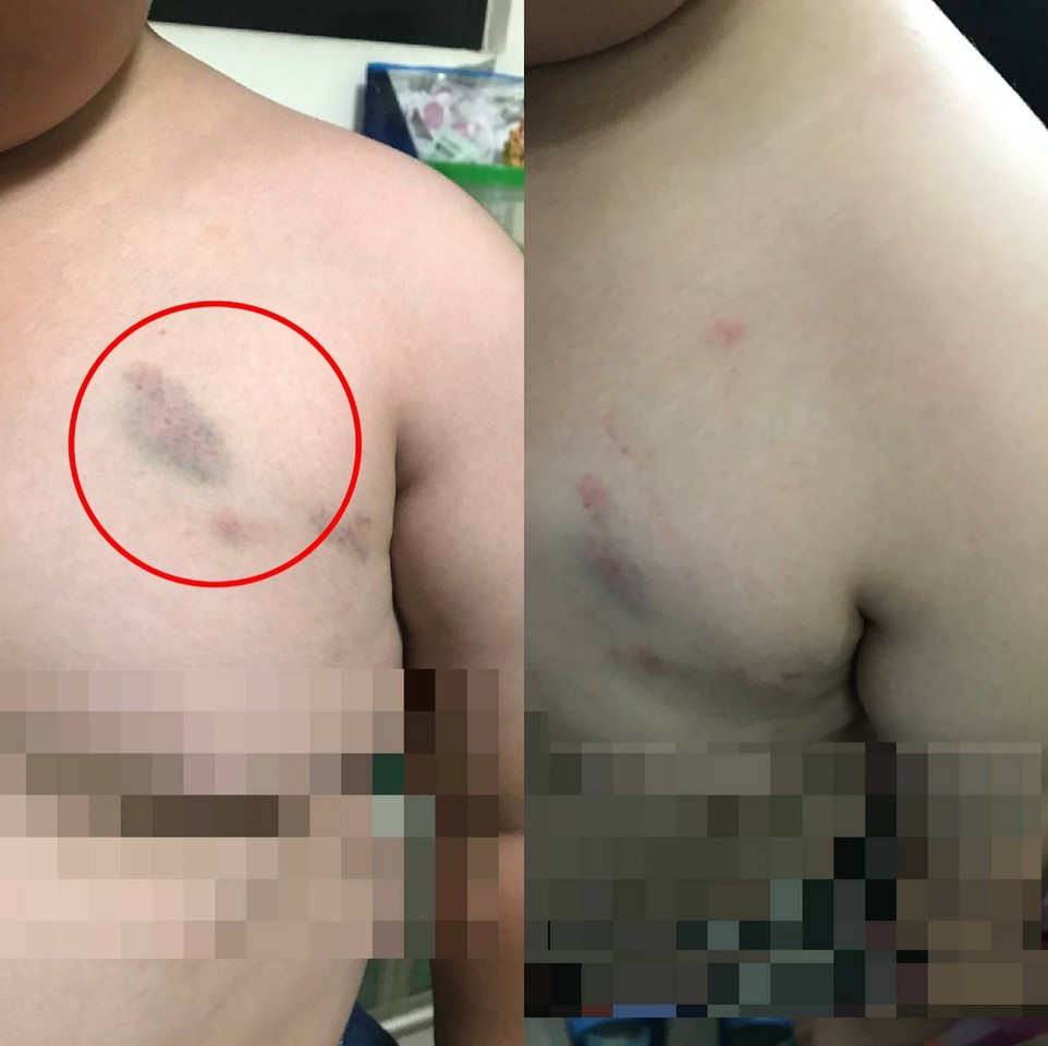 ▲家長PO文指控園方不當管教,造成孩子左胸瘀挫傷。 (圖翻攝自臉書《靠北惡質幼兒園》)
