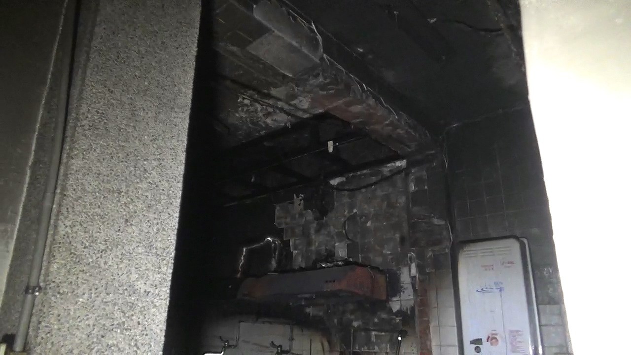 初步調查財物損失5千元,燃燒面積10平方公尺,但餐廳廚房已整個全毀。