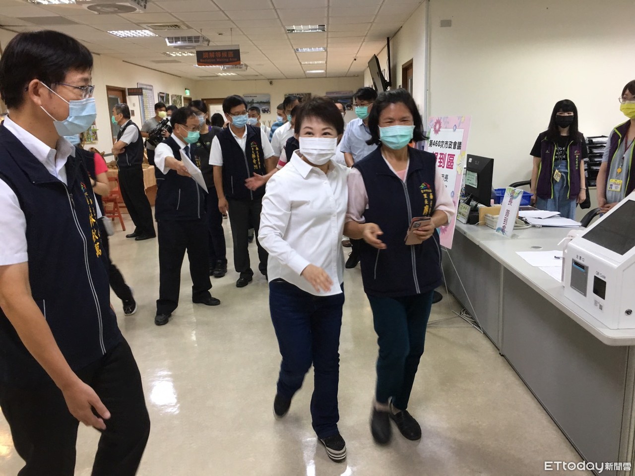 ▲▼盧秀燕主持行動市政會議前,親切和南屯區公所同仁打招呼。(圖/記者鄧木卿攝)