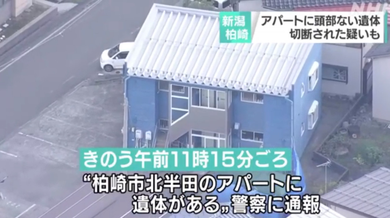日本新潟縣柏崎市住宅區19日驚傳出現一具沒有頭顱的屍體,已知屍體是在公寓一樓房間被發現,死亡已有一段時間,但身分及性別均尚待確認,警方現正朝向棄屍案調查。