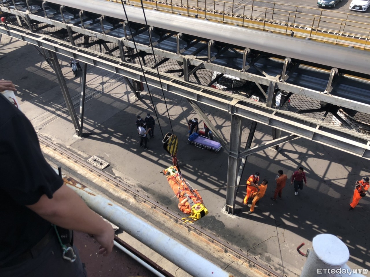 ▲台中港船長墜落6公尺高船梯。(圖/記者李忠憲翻攝)