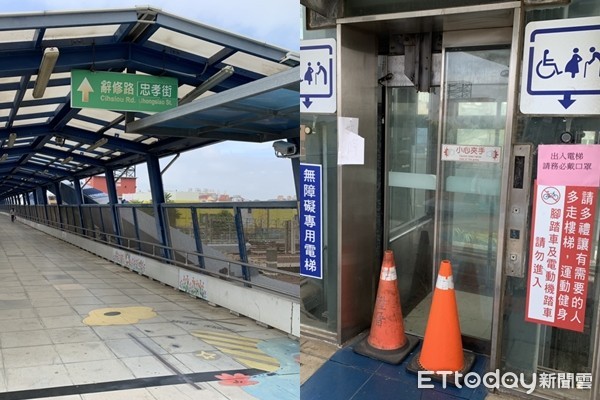 ▲彰化火車站跨站人行陸橋「無障礙電梯」再度故障。(圖/記者唐詠絮翻攝,下同)