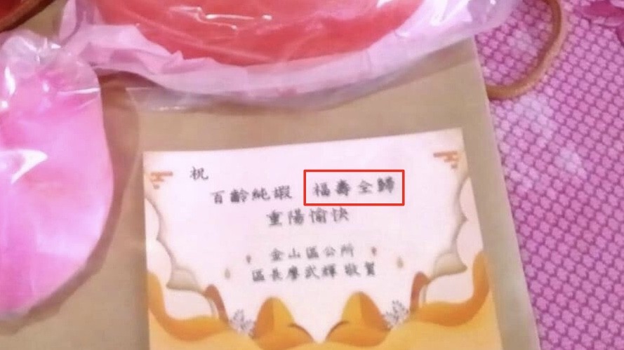 ▲金山區公所祝人瑞「福壽全歸」,命理師楊登嵙曝:絕對不能用...咒人死之意。(圖/民眾提供)