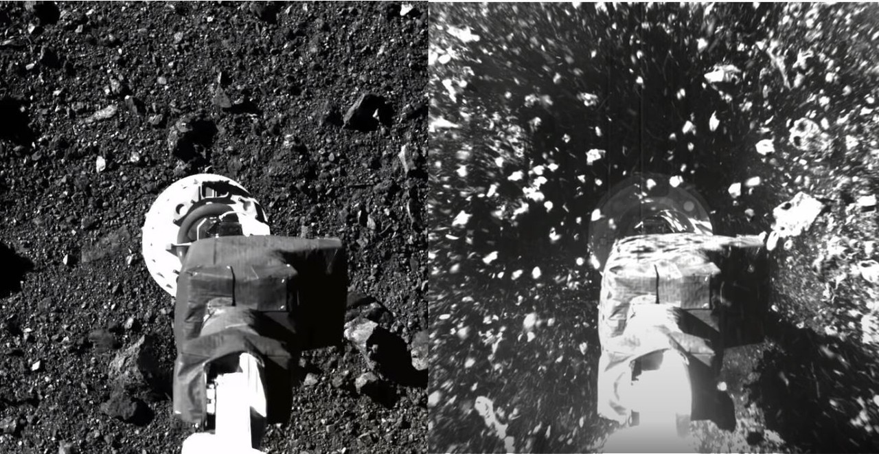 美國太空總署(NASA)於20日成功執行名為「貝努」(Bennu)的「小行星101955」採樣任務,除了同步直播外,NASA於當地時間21日在官網公布,太空船登陸採樣的現場畫面,採集長臂以每秒10公分的速度與小行星正面接觸,強烈撞擊下岩石被瞬間壓碎,噴飛出許多小石礫,透過影片能感受到當時巨大的撞擊力,場面十分震撼。