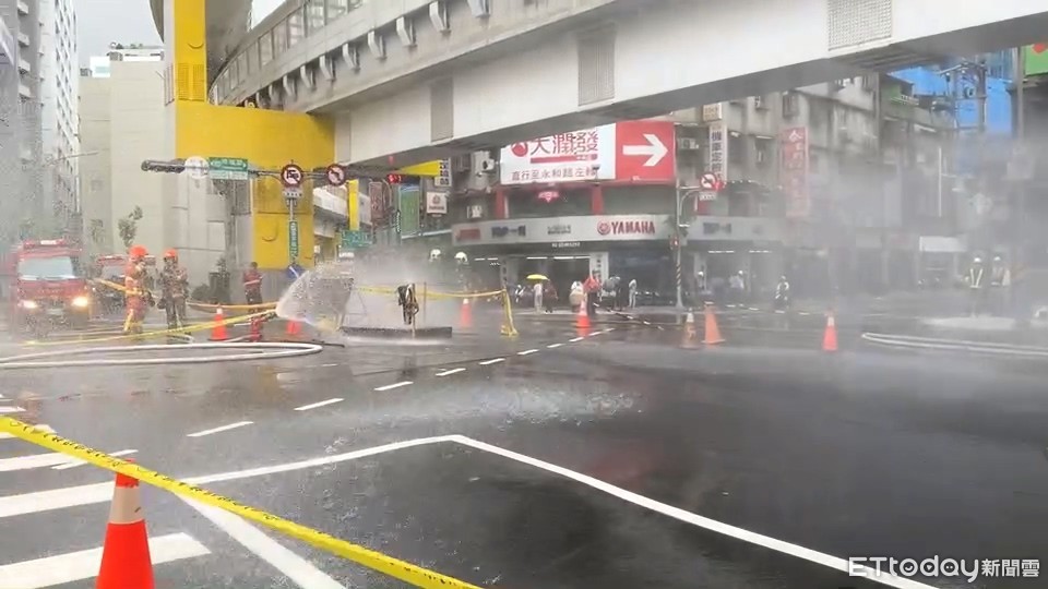 新北中和區景平路、連城路口22日上午11時許發生一起事故,事發當時自來水管破裂,導致地面微微下陷,也因此壓到瓦斯管線,而消防員目前仍在現場灑水、部分道路也已經封鎖,至於事故詳細發生原因仍有待調查。