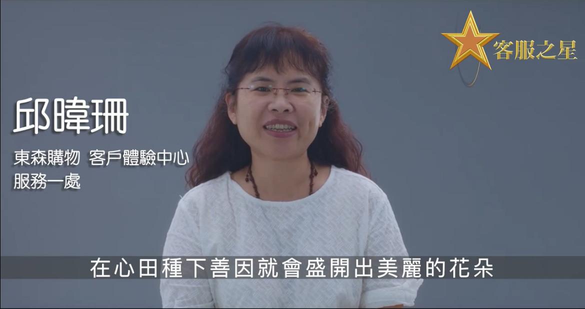 大家好~我是東森購物-服務一處-邱暐珊,主要承接售後服務處理,業外執行問券、買加購商品銷售等。很開心獲得這項殊榮,更感謝各位長官的肯定,將秉持一貫的服務態度與熱情精神,提供更貼心服務,感動更多客戶,讓客戶更把我們當朋友般的支持。
