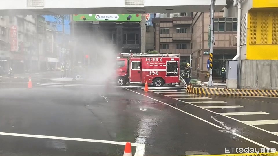 ▲中和管線破裂,目前實施交通管制。(圖/記者陳雕文翻攝,下同)