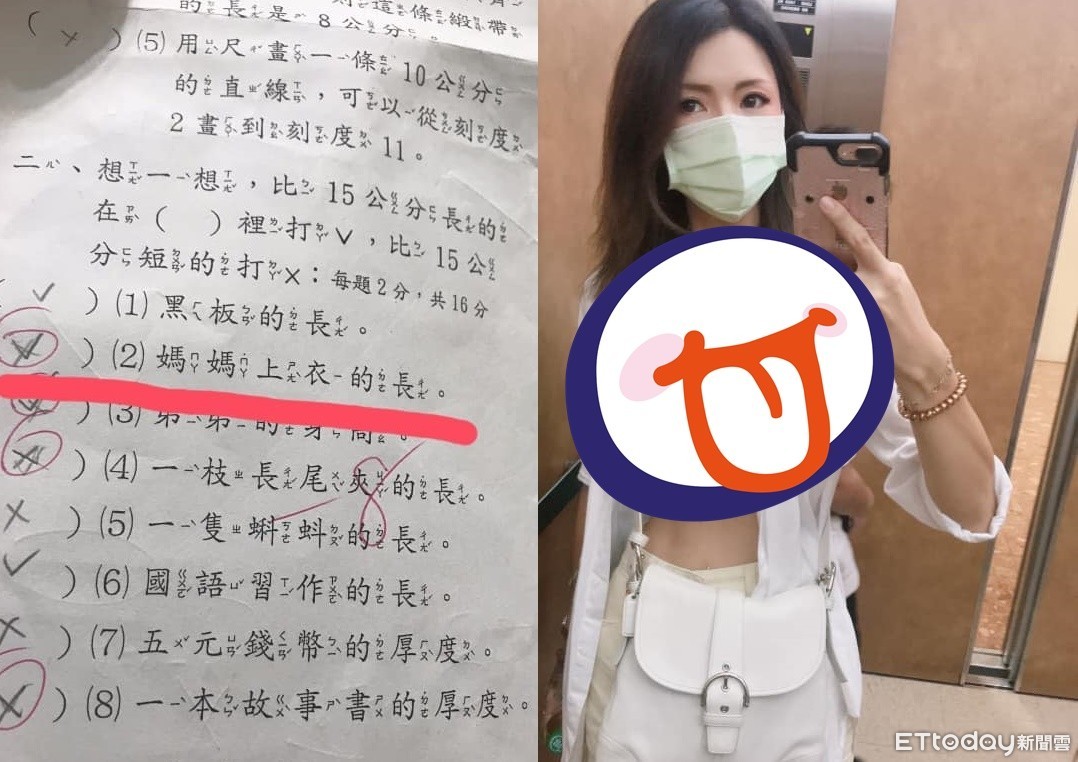 原PO在「爆廢1公社」上直呼,「所以我該幫他(兒子)跟老師要分數嗎?」她先前檢視兒子的數學考卷時,立刻被一道題目吸引目光;考卷上的第二大題寫道,「想一想,比15公分長的在()裡打V,比15公分短的打X」。