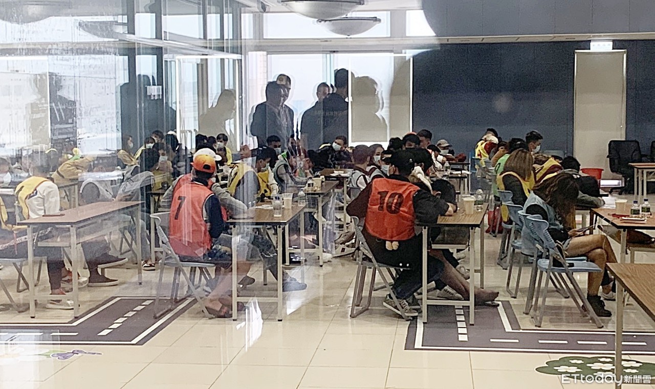 ▲桃園市刑大等單位24日凌晨在蘆竹區破獲大型舞廳毒趴,現場上百名越籍移工等舞客在市警局刑大靜待驗尿。(圖/記者沈繼昌攝)