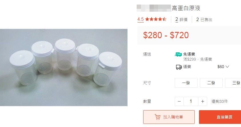 不過,實際前往該網拍平台搜尋,的確還能找到一些販售「高蛋白」的賣家,商品甚至分成1發、2發、3發等尺寸,下單前還要先私訊詢問,再依照ml數計價,每瓶約3至5ml。部分買過商品的買家也留下4星、5星的高評價,大讚賣家出貨速度快、品質高、CP值超讚等等。