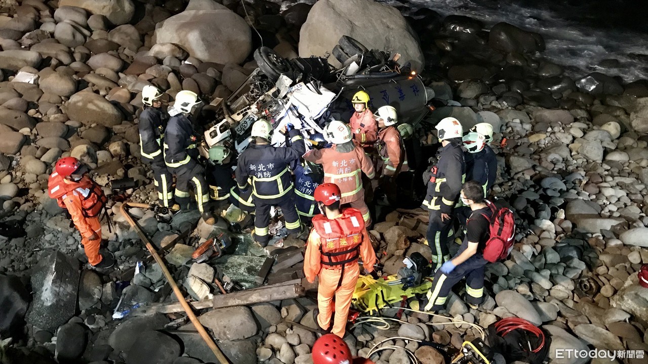 新北市金山區27日晚上7時發生重大車禍,49歲的李姓男子駕駛一輛私人企業3.5噸的灑水車,行經香菓園準備轉往台二線約38.2公里處,疑似車速過快煞車失靈,衝過護欄掉進消波塊,導致車頭嚴重凹陷全毀,碎片散落一地。男駕駛身體多處擦挫傷,意識清楚,救護車趕抵時,將人緊急送往台大金山醫院救治,確切事故發生原因,仍有待警方進一步調查釐清。