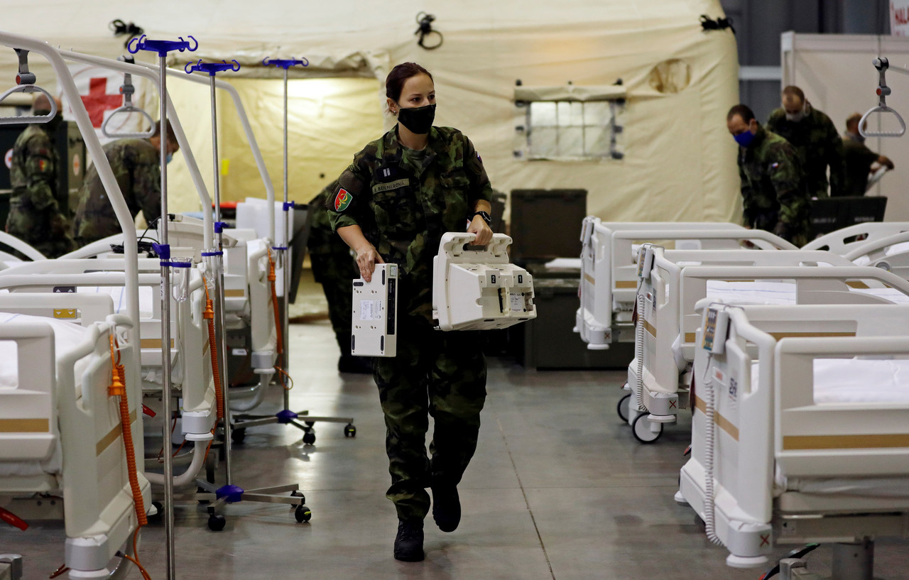 ▲捷克軍方在布拉格展覽中心搭建臨時醫院。(圖/路透)
