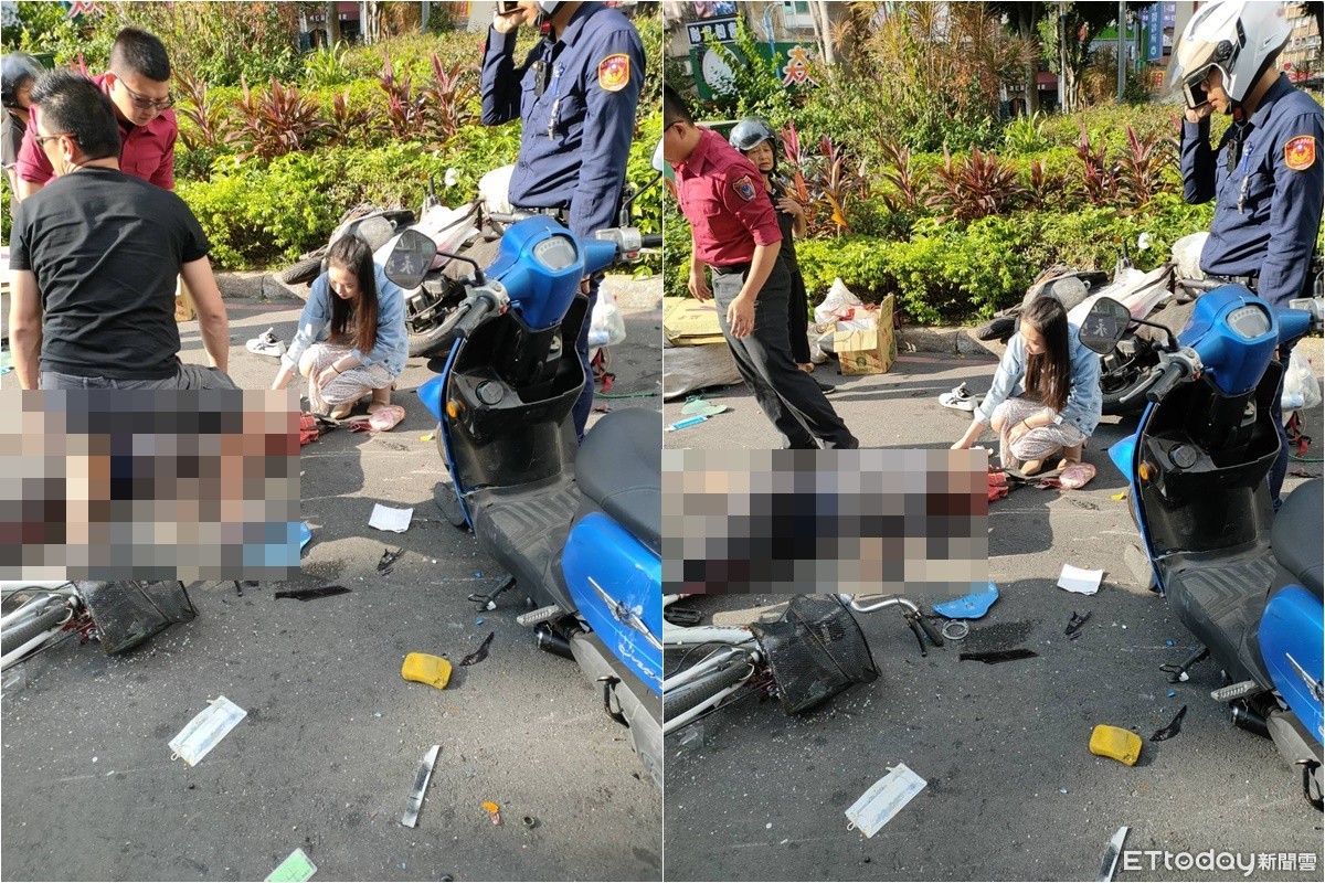 事發當時,附近目擊者聽聞撞擊巨響,紛紛轉頭查看,其中一名穿著長裙、奶茶色跟鞋、藍色牛仔外套、留著一頭長髮的女子,見狀趕緊上前協助,更拿出自己的包包讓倒臥地面的吳姓老翁墊高頭部,更蹲在一旁查看老翁情況,讓家屬感動不已。