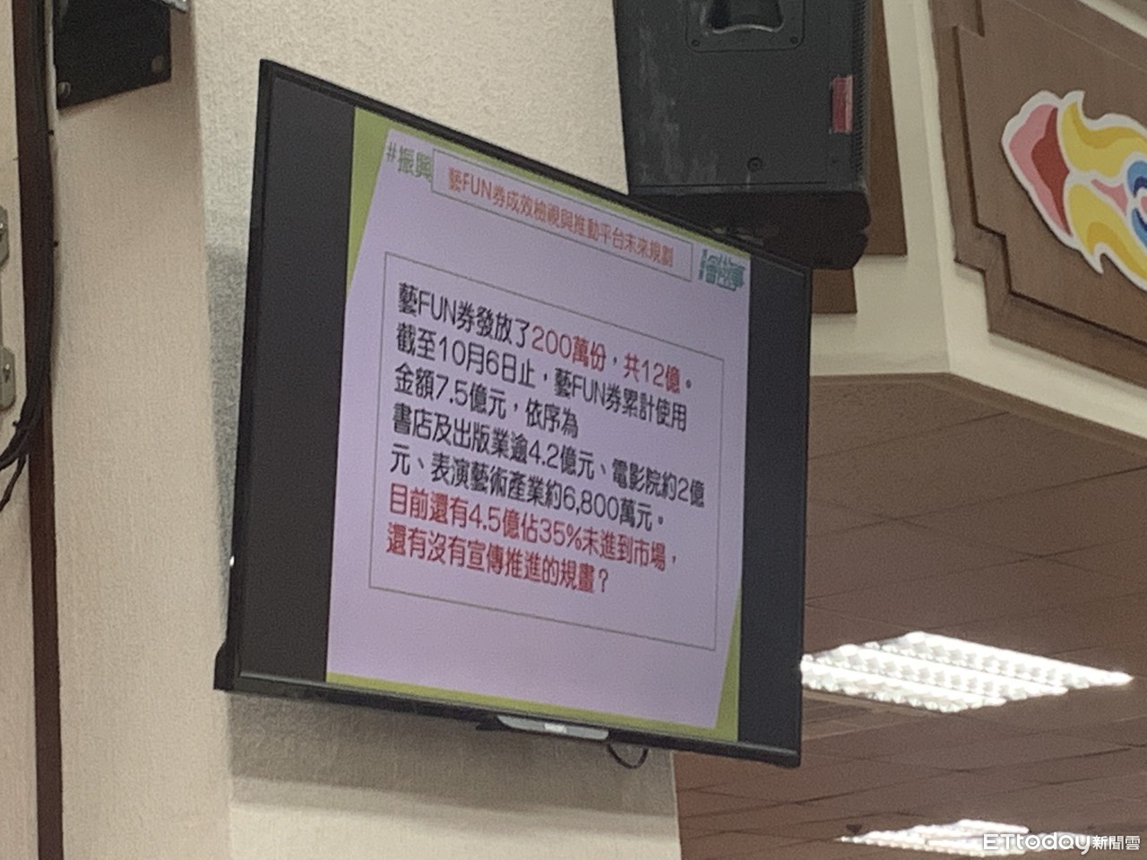 ▲立委黃國書關切「藝FUN券」使用情況。(圖/記者林育綾翻攝)