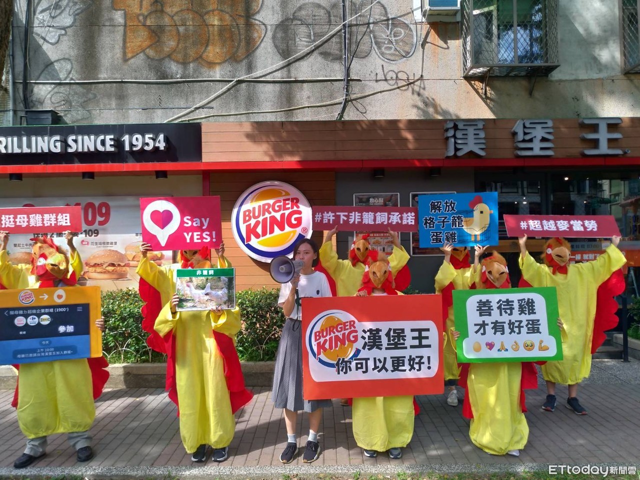 ▲動保團體要求漢堡王「解放蛋雞」。(圖/台灣動物社會研究會提供,下同)