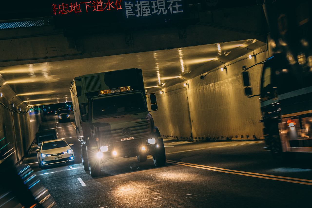 ▲國軍戰備周,淡水捷運站地下道陸軍關指部多輛雲豹甲車及戰車停放。(圖/記者呂佳賢攝,下同)