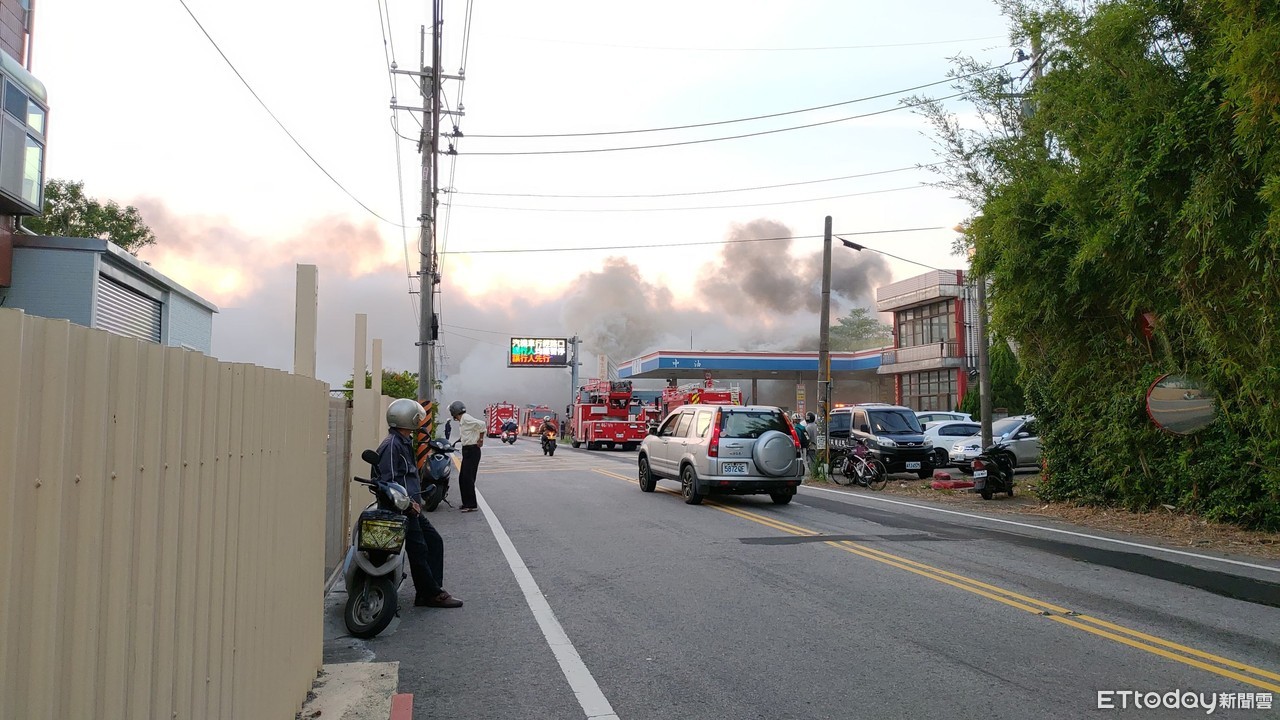 桃園市平鎮區南平路二段加油站旁一鐵皮屋28日下午發生火警!只見濃厚黑煙不斷狂竄,附近民眾一見嚇壞趕緊報警處理,不少人也將拍下這幕上傳網路,由於火勢猛烈,目前加油站已緊急關閉,警消人員獲報後趕抵現場,封鎖周邊路口,並布水線搶救中,目前現場回報暫無人員受困,詳細發生原因仍有待調查釐清。