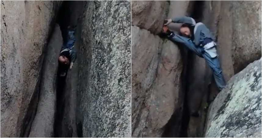 從曝光的畫面中,老爺爺時而緩慢爬行,遇到比較窄的岩壁縫隙,他直接大膽放手滑落;在成功抵達地面後,他還不忘大秀自己的柔軟筋骨,向外界完美詮釋了老當益壯的體能與活力。(影片請點我)