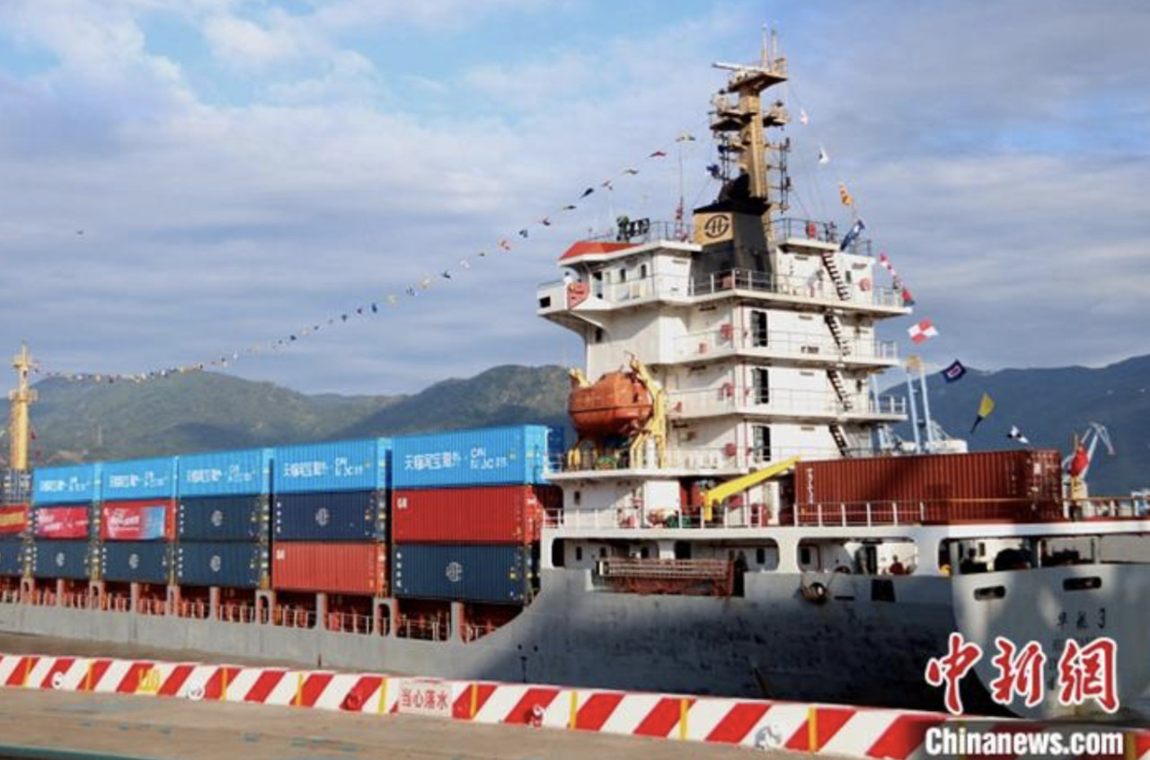 ▲「福州馬尾—台灣」跨境電商海運開通。(圖/翻攝中新社)