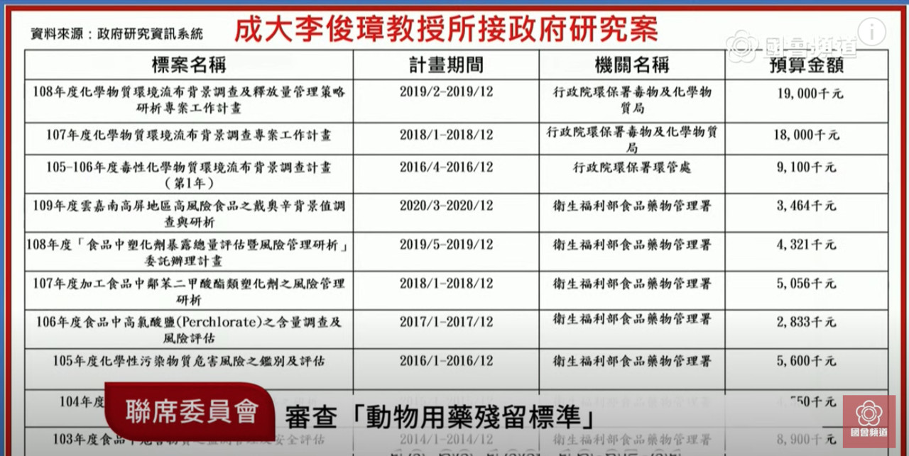 陳以信表示,衛福部自103年起就委託成功大學環境微量毒物研究中心主任李俊璋執行各項研究,許多委託案都是百萬起跳,7年來委託案合計3472元,加上環保署標案,合計8000多萬元,但此次關乎國人健康的「食用肉品暴露萊克多巴胺之健康風險評估」,卻僅花了9萬9000多元,懷疑是以微幅價差規避公開招標。