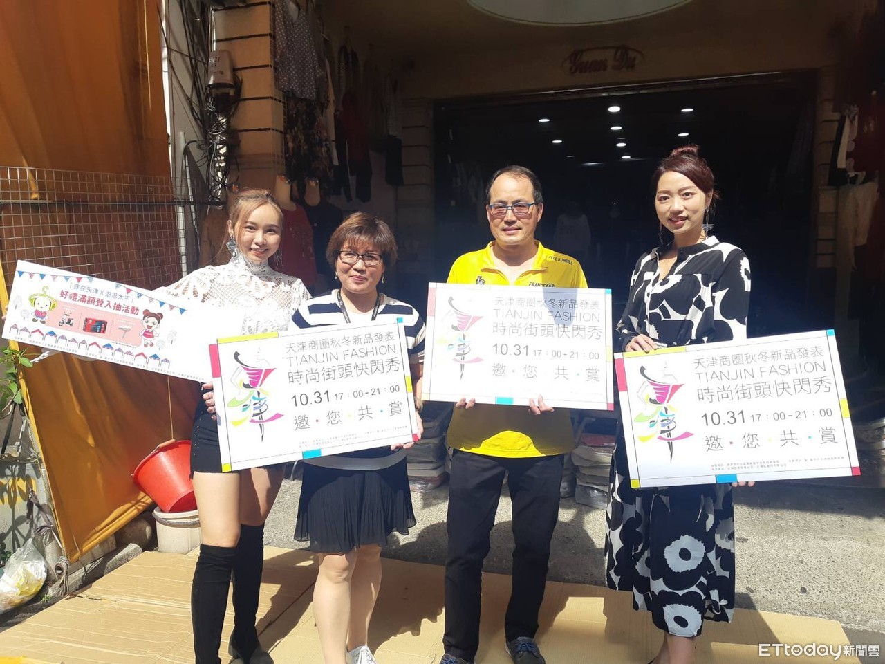 ▲台中市天津服飾商圈主委吳永芳(右2)和經發局商業科長羅月卿(左2)歡迎大家萬聖夜來欣賞街頭時尚快閃秀。(圖/記者鄧木卿攝,下同)