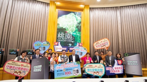 ▲聲寶總裁陳盛沺表示,聲寶的企業大部分都在桃園,因此秉持「取之於社會,用之於社會」的信念,回饋地方。▼聲寶捐贈熱銷的空氣清淨機。(圖/市府提供)