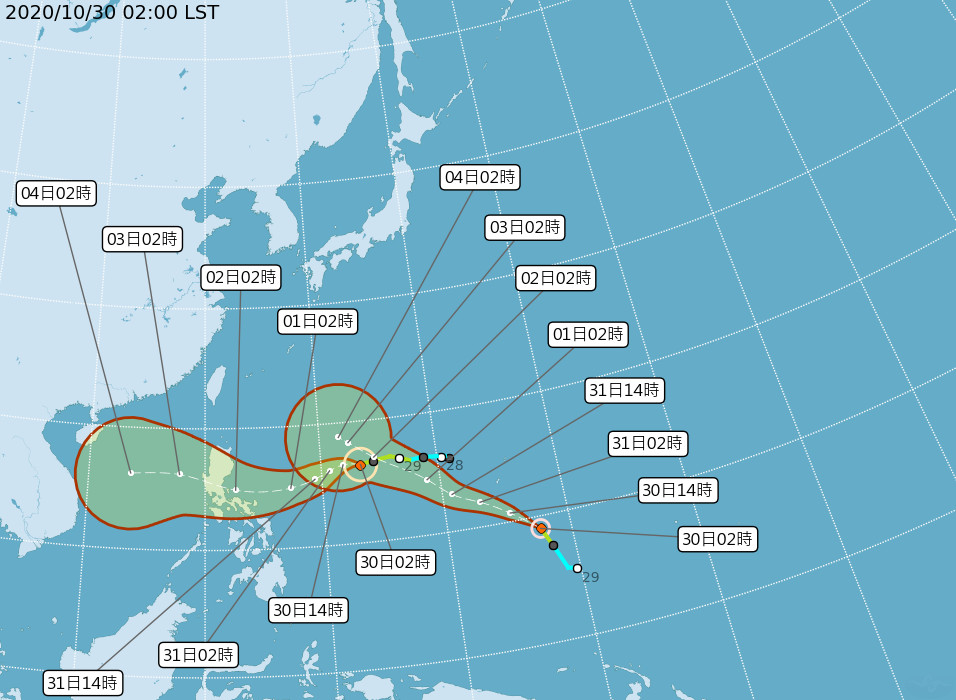 ▲天鵝颱風才剛生成,緊接著第20號輕颱「閃電」也於昨晚生成。(圖/翻攝自中央氣象局,下同)