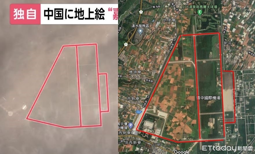 將日媒所拍攝到的照片與清泉崗基地的衛星照片進行比對後可以發現,兩者形狀可以說是如出一轍。據悉,解放軍每年都會在此地進行軍演,疑似是模擬對台突襲的炸射演練。