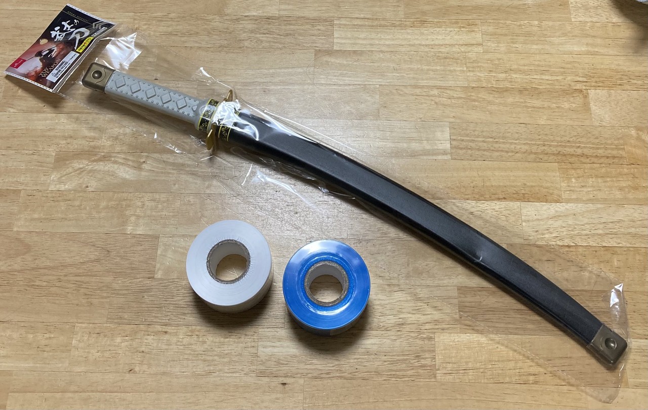 根據《ねとらぼ》報導,一名網友(nam-5)於25日在推特發文表示,在百元商店購買一把玩具刀和藍、白色彩帶,回家後再將其黏在刀上,就完成簡易版的「日輪刀」,前後花費僅需330日幣(約新台幣90元)。