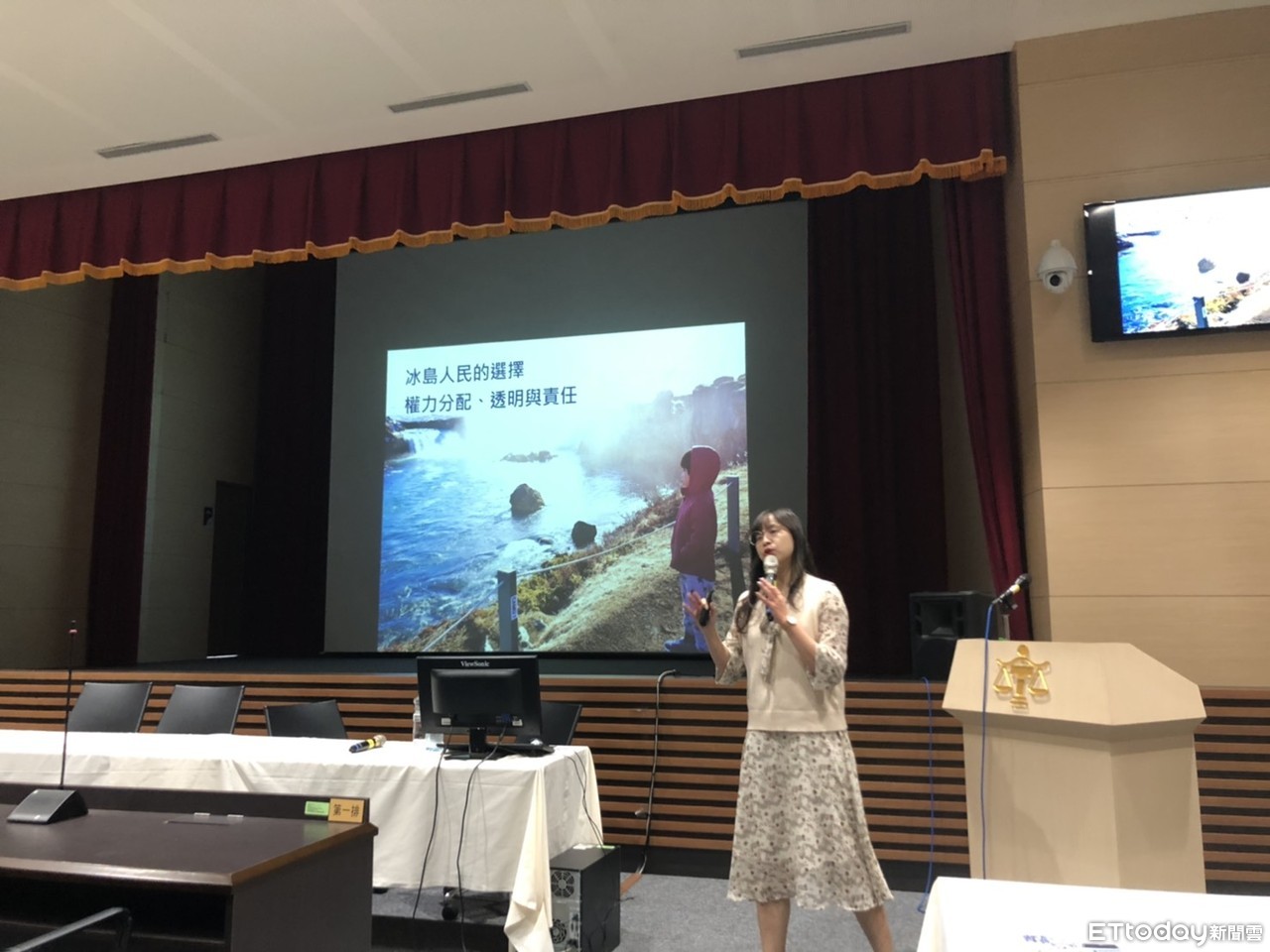 ▲知名部落客、Sunny背包流浪記賴玉婷到新竹地院演講,分享與丈夫、三個孩子環遊世界時,接觸當地公部門之廉政相關經驗。(圖/新竹地院提供)