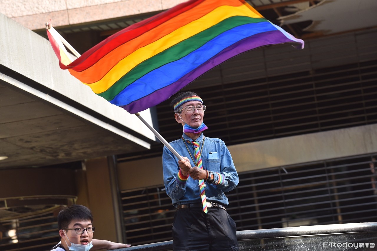 2020第18屆台灣同志遊行今(31日)下午在台北市政府前廣場集結出發,台灣同志運動先驅祁家威也現身參與,揮舞著彩虹大旗走在隊伍前端,一路走到原本的敦南誠品他則停下腳步揮舞大旗,他表示,台灣已經有5000多對合法同志婚姻,下一步則要解決跨國同婚議題。
