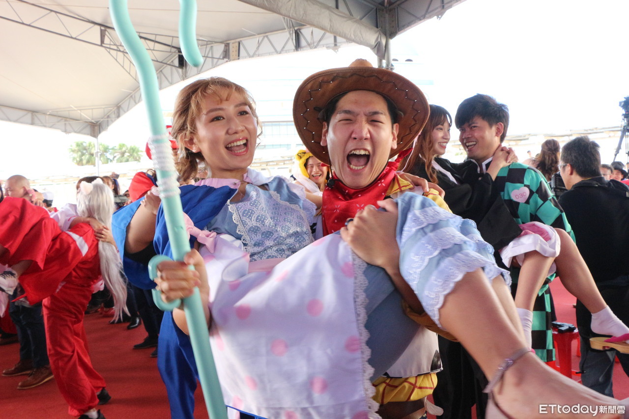 2020新北聯合婚禮1日在淡水漁人碼頭浪漫登場,今年以「英雄派對」為主題,百對新人化身英雄人物,搭乘市府特地打造的淡海輕軌藍海線英雄幸福列車閃耀進場,甜蜜互尬「英雄公主抱」及交換信物,現場粉紅泡泡爆棚,市長侯友宜、副市長謝政達也特別前往獻上祝福。