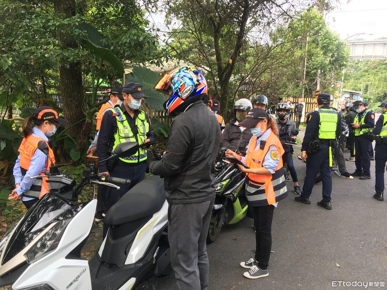 ▲新店警方在北宜公路實施聯合稽查。(圖/記者陳豐德翻攝)