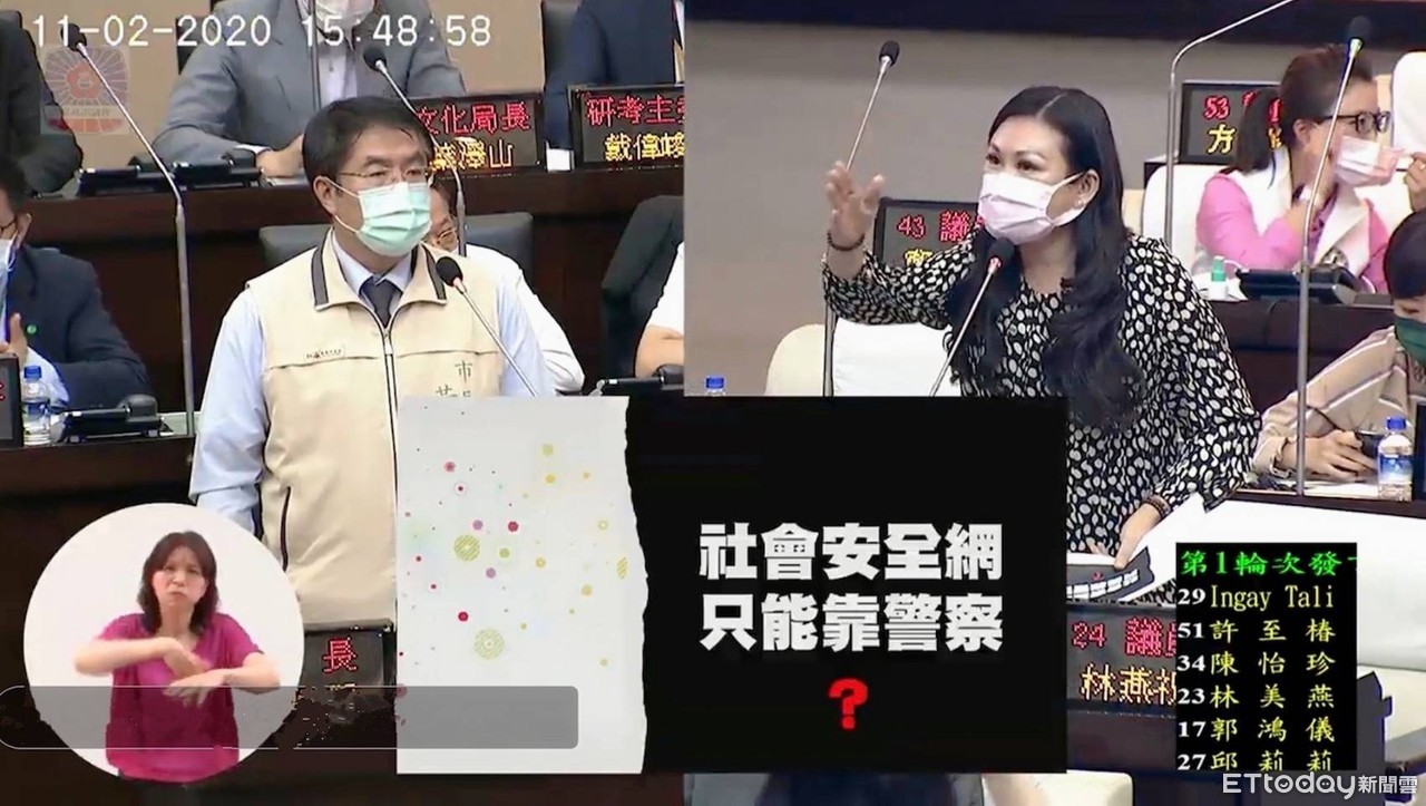 ▲針對長榮大學馬國女大生遇害事件,市議員林燕祝質詢市長黃偉哲,治安問題不只在警察,不是換了分局長就了事,要求施政要有比例原則,不能只顧著當網紅。(圖/記者林悅翻攝,下同)