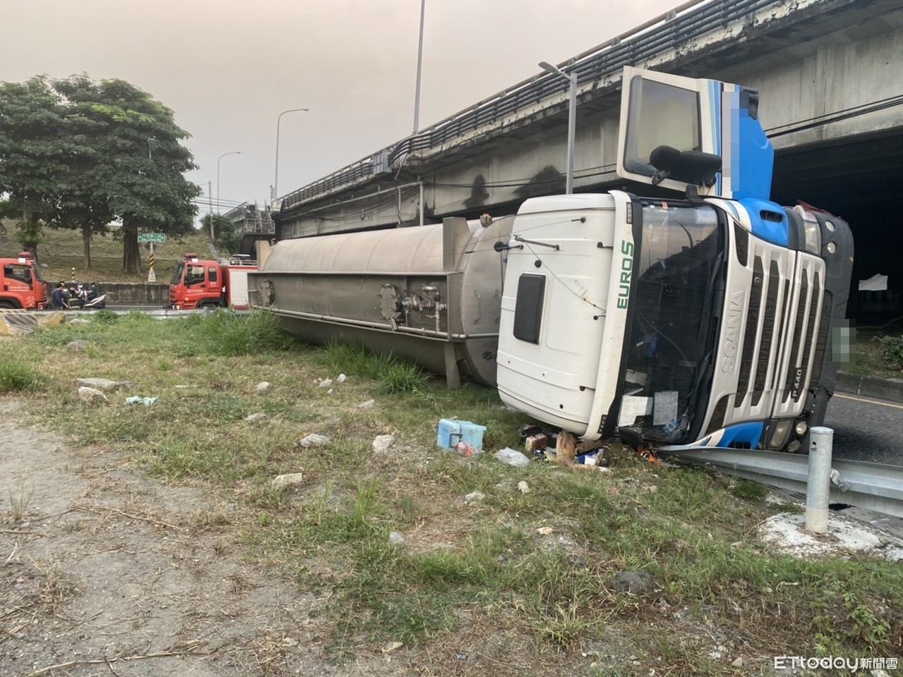 ▲大寮區台27縣道與台88道路槽車翻覆。(圖/記者吳奕靖翻攝)