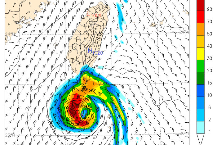 ▼閃電恐路過台灣南邊海域,恆春暴風侵襲率達32%。(圖/中央氣象局、翻攝tropicaltidbits)