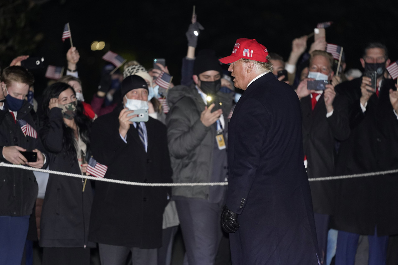 福斯新聞報導,川普已於3日凌晨3時左右回到白宮,當時現場有大批支持者揮手歡呼,而戴著紅色帽子的川普與現場民眾互動數分鐘後,這才走進白宮。