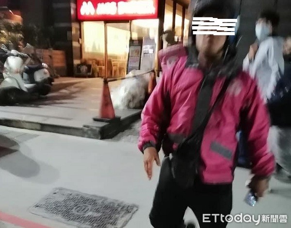 ▲有跳跳虎之稱的熊貓外送員蛇行擋車推人還爆粗口。(圖/記者楊熾興翻攝)