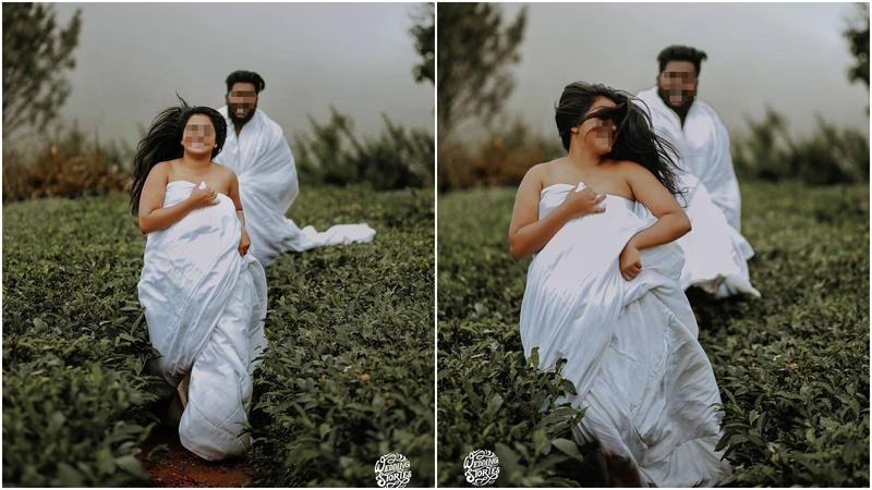 原來蕾可希咪和卡爾提克的婚紗照中,有一組照片只披著床單,兩人在茶園追逐,讓人聯想到他們下身全都「光溜溜」。對此,酸民瘋狂開砲「畫面情色,根本是保險套廣告」「還不快去開房間」,大量留言更將矛頭指向新娘蕾可希咪,認為她素顏很醜、還叫她去拍A片。