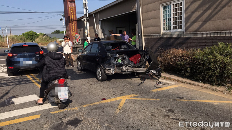 ▲42歲張姓女子駕車行經台南市後壁區上茄苳平交道時,疑未保持安全距離,車子在平交道等紅燈時,車尾遭火車擦撞,嚴重毀損,幸無人傷亡。(圖/記者林悅翻攝,下同)