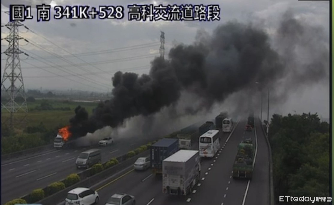 ▲國道一號北上342.4公里處,發生一起火燒車車禍。(圖/記者吳世龍翻攝)